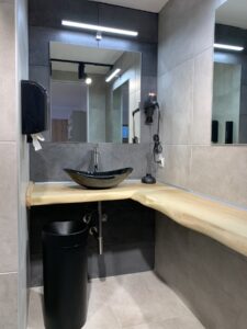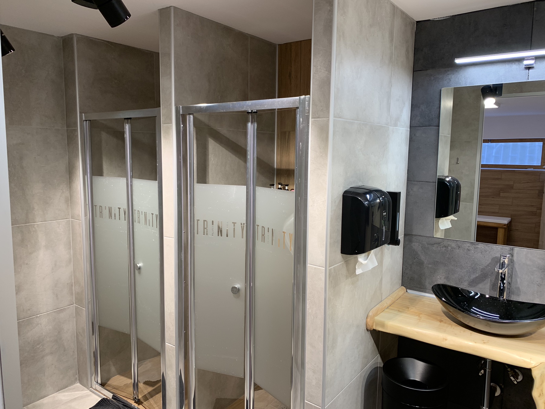 Στο Trinity Pilates Hall, η φροντίδα για την εμπειρία κάθε ασκούμενου επεκτείνεται και στους βοηθητικούς χώρους, με την ίδια προσοχή και αισθητική που διακρίνει ολόκληρο το στούντιο.