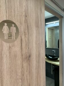 Ο χώρος διαθέτει δύο ευρύχωρες τουαλέτες, χωρισμένες σε ανδρική και γυναικεία, οι οποίες είναι άρτια εξοπλισμένες για να εξυπηρετούν τις ανάγκες όλων με άνεση και διακριτικότητα. Στις γυναικείες τουαλέτες παρέχονται επιπλέον προϊόντα προσωπικής φροντίδας, όπως μωρομάντηλα, σερβιέτες και ταμπόν, ώστε κάθε γυναίκα να νιώθει ασφαλής και φροντισμένη σε κάθε στιγμή.